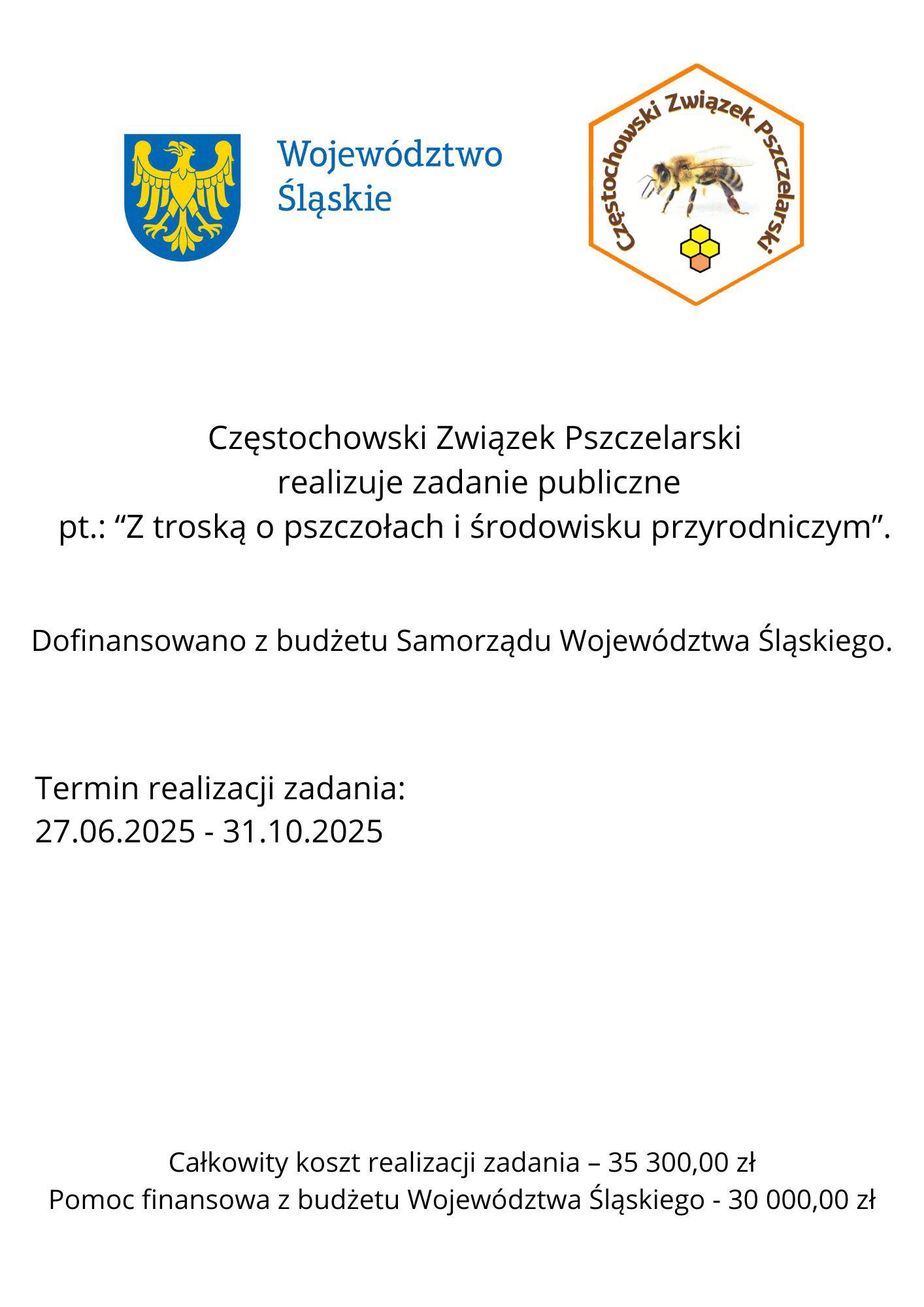 Dzialanie realizowane w ramch zadania publicznego Śląskie dla Pszczół-2025,